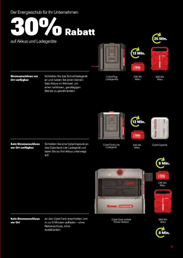 Von Zeit zu Zeit macht eine revolutionäre Technologie Dinge, wie wir sie kennen, überflüssig. Das Kress 8-Minuten-CyberSystem liefert beispiellose Leistung und lädt mit unglaublicher Geschwindigkeit auf. Kontaktieren Sie noch heute Ihren Kress-Händler und erleben Sie die Zukunft des Landschaftsbaus.
